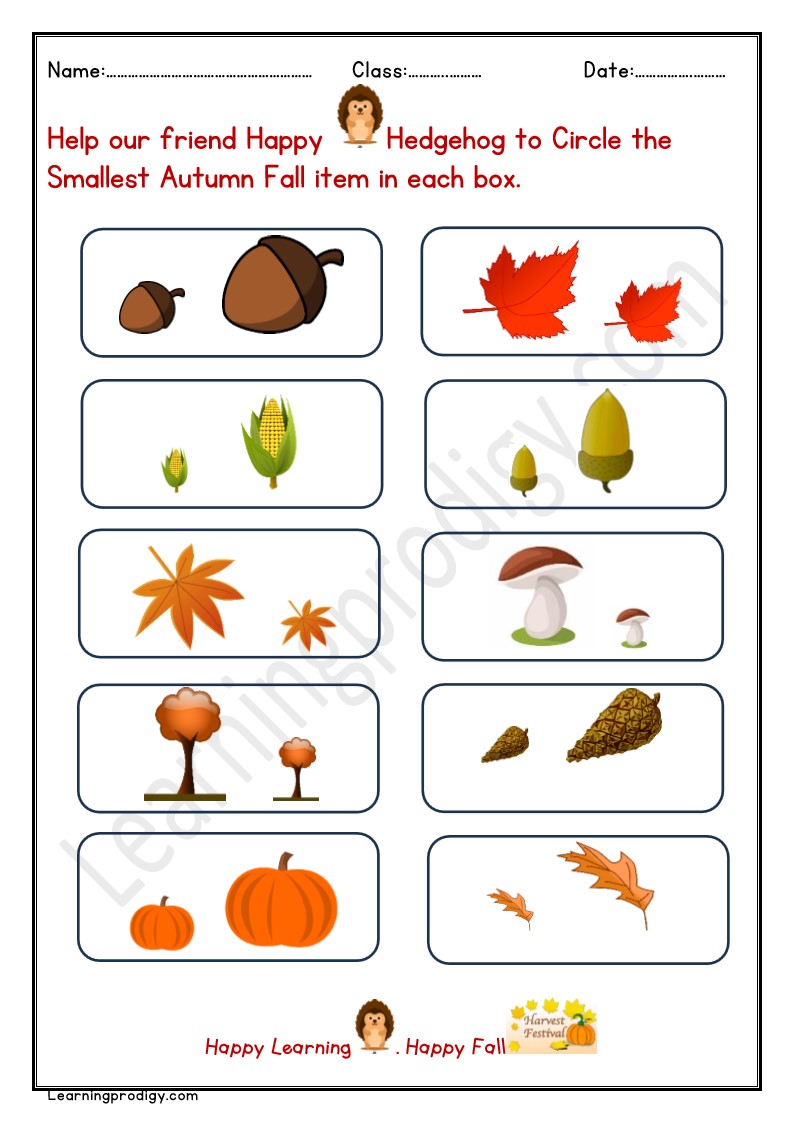Free Downloadable Fall Math Worksheet for Pre-K Kids with Pictures